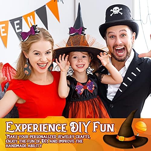 Rich combination: the package comes with 12 pieces Halloween faux leather sheets in different styles, 10 pieces hair clips, 60 pieces earrings, 60 pieces jump rings and 1 piece multi-functional ring, ideal for leather bow making and other DIY crafts, suitable for both beginners and other people