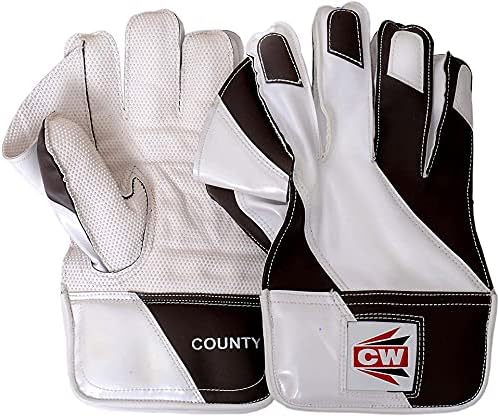 COUNTY: Wicket Keeping gloves are made from premium quality leather to ensure compact texture to prevent rubbing and provides security from shock absorption by giving perfect grip on the ball while doing wicket keeping. They have rubber cups on the inside of each finger for a good grip as well as to protect from any untoward impact. They have well padded from the inside for better cushioning as well as perfect protection. It also has a cloth lining on the inside of the cuffs. This pair is made from high-quality material with a natural cup and palm design High quality, all-leather palm and back, size suitable for boys, youth as well as an adults.