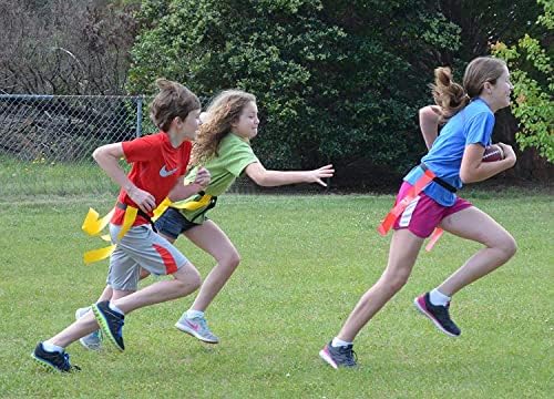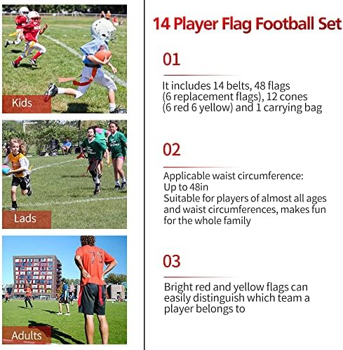 Flag Football Set, 14 Player Flag Football Belts and Flags Set, Includes 14 Belts, 48 Flags(6 Replacement Flags), 12 Cones and 1 Carrying Bag, Easy Tear Away Belt for Kids or Adults