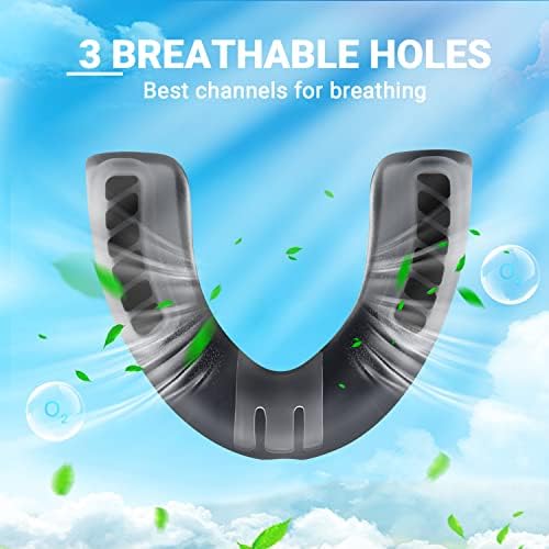 Fit Design: Our mouth guard breathable designs to allow air to escape more freely and provide you with a more relaxing breathing experience. Each mouth guard with a Convertible Tether to allow the mouthguard to be used strapped or strapless.