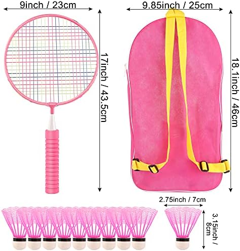 【High-quality Materials】 This kids badminton racket set is made of Aluminum alloy, rubber sponge and nylon. It is durable, does not contain harmful chemicals, and is safe for kids to use. Dimensions: 17.13″ x 9.05″/43.5x 23cm. Streamlined design is adopted to reduce air resistance.