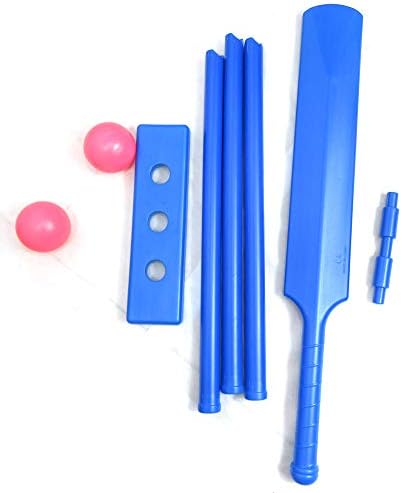 Heavy-Duty Plastic Cricket Set(Random Color) Include 1 Bats 2 Balls 1 Bases 3 Stumps for Indoor & Outdoor Beach Game