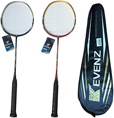KEVENZ 2 Pack Graphite High-Grade Badminton Racquet, Professional Carbon Fiber Badminton Rackets, 1 Black and 1 Red Racket, 1 Carrying Bag