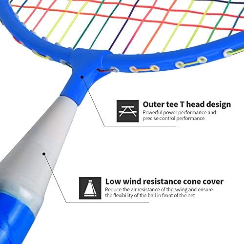 🎾【LIGHTWEIGHT AND DURABLE】The badminton racket for kids is easy to handle; T-shaped reinforced joint strengthen the connector, to avoid the deformation and prolong the service life.