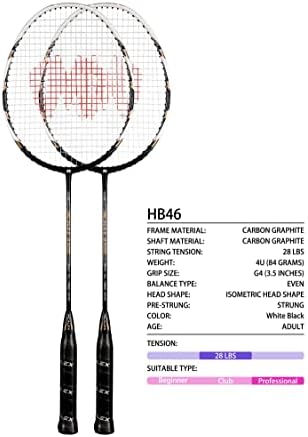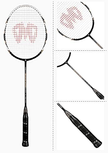 MCALEX Graphite Badminton Rackets Set of 2 for Backyard Games Suitable for Amateurs and Professionals, Badminton Set Including 1 Badminton Bag, 2 Rackets, 3 Replacement Grip Tapes (White)