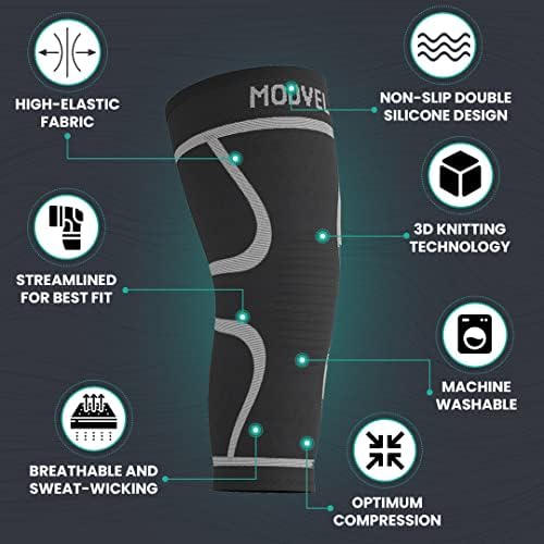 MODVEL 2 Pack Knee Brace | Knee Compression Sleeve for Men & Women | Knee Support for Running | Medical Grade Knee Pads for Meniscus Tear, ACL, Arthritis, Joint Pain Relief.