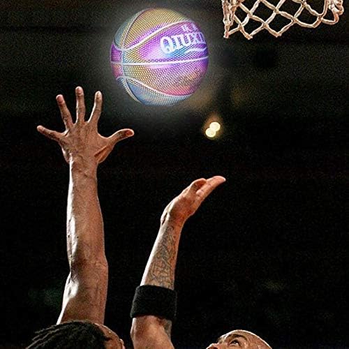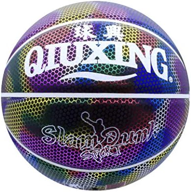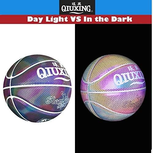 QIUXING Holographic luminous reflective basketball. The official luminous size is 29.50 inches, suitable for indoor and outdoor use.