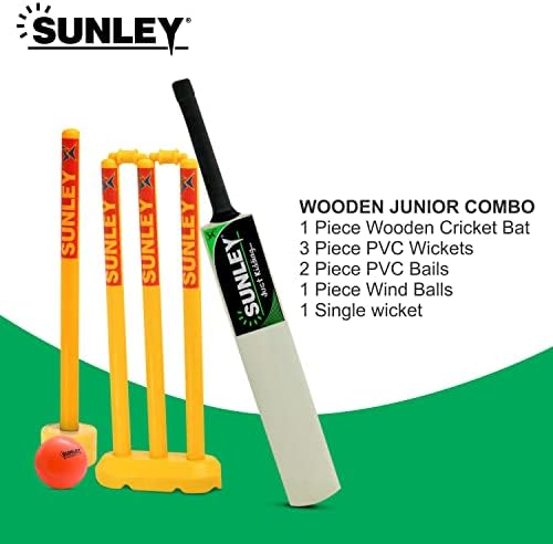 In The Box: 1 Pc Wooden Bat Size 3, 2 Wicket Set ( 4 Stand, 2 Bails, 2 Base), 3 Wind Ball