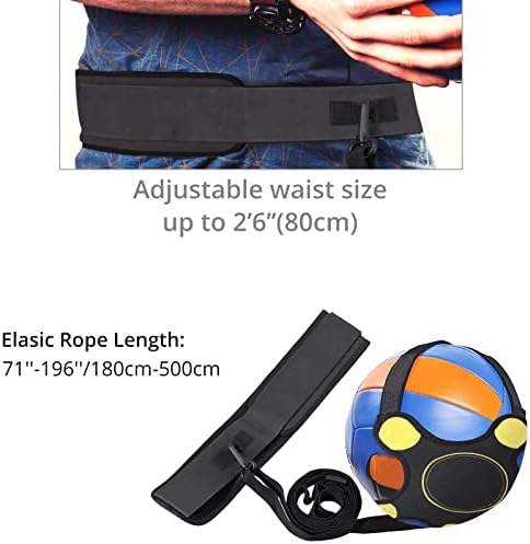 FULLY ADJUSTABLE FOR KIDS, TEENAGERS AND ADULTS: This Sports Volleyball Trainer is designed to accommodate all sizes and skill levels. The elastic tether cord can be adjusted from 39 inches (1m) for beginners, all the way to 79 inches (2m) for advanced players. The elastic tether can be extended up to 7 meters. The neoprene belt will fit up to a 2’8” waist. The ball pouch will fit a standard or beach volleyball, soccer ball, basketball, or even a Football!