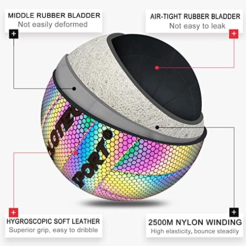 SPECTACULAR HOLOGRAPHIC VOLLEYBALL — Our holographic volleyball is made of a new generation of durable reflective PU leather, which makes the volleyball a bright holographic effect when light hitting the ball.