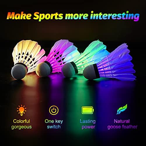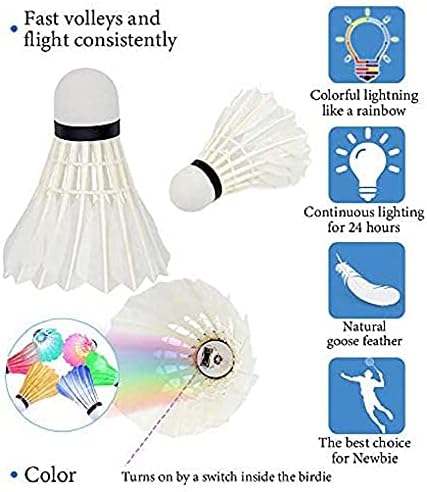 YYZP 6-Pack LED Shuttlecock Badminton, Colorful Shuttlecock Dark Night Goose Feather Glow Birdies Lighting for Outdoor Indoor Sport Activities Toys Gift Game